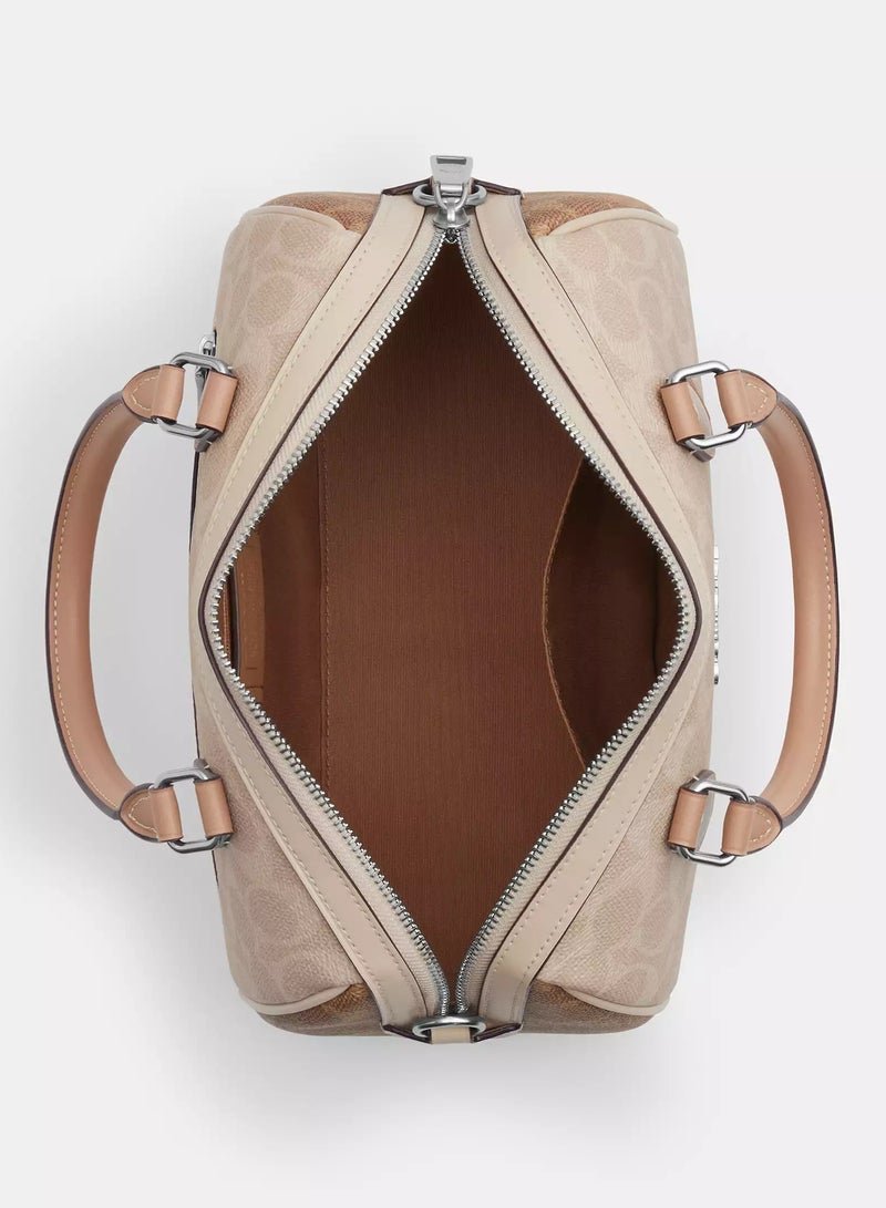 Our Rowan Satchel Bag has a timeless silhouette that’s structured yet easygoing. Crafted of Signature coated canvas, this everyday satchel bag features a spacious interior and multifunction pockets to fit daily essentials like your phone, keys and any sized wallet. Carry it by the top handles or wear it hands-free with the detachable crossbody strap. This canvas satchel bag is finished with a zip-top closure to keep everything secure.
